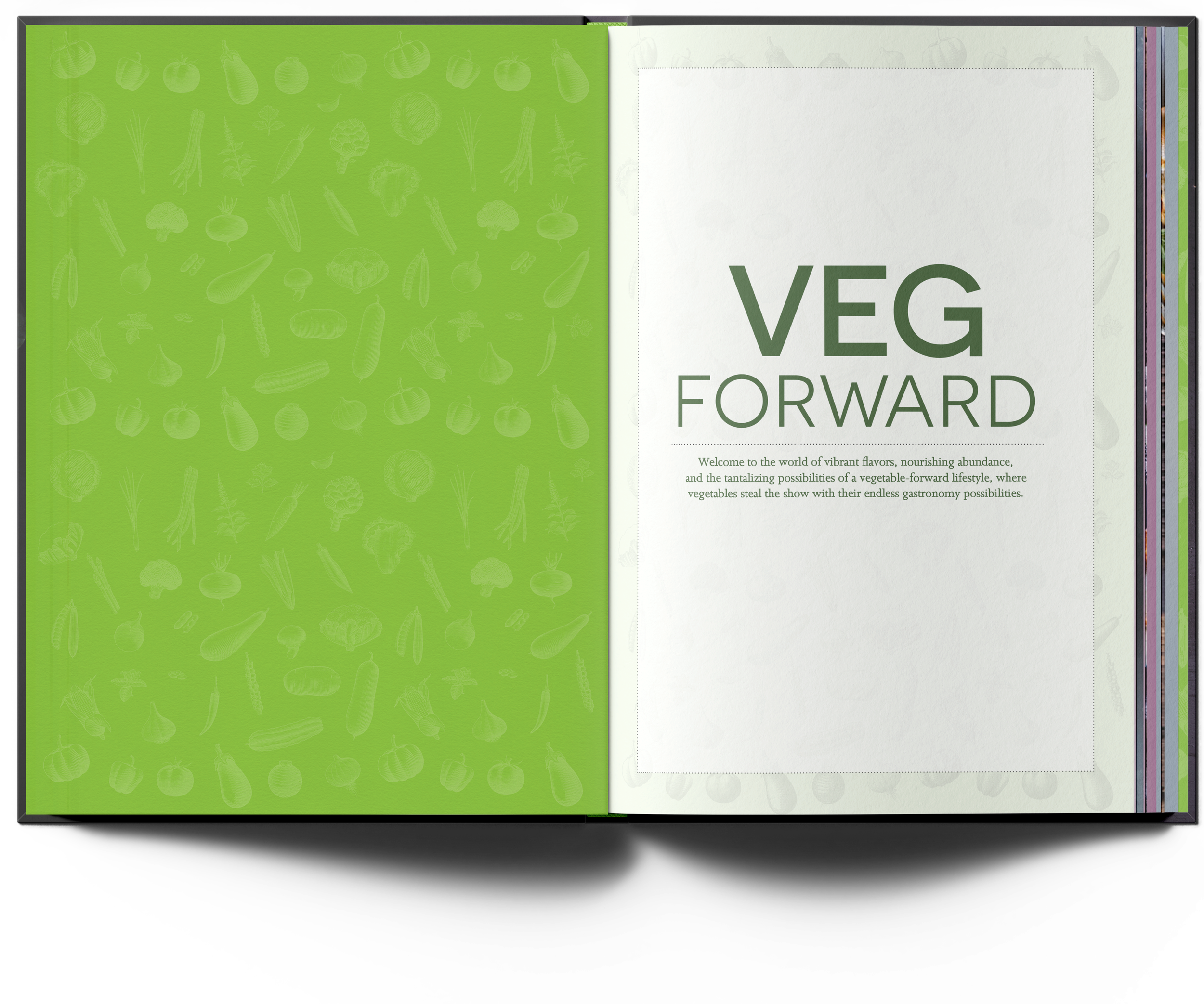 The Concept Veg Forward is a conceptual design that I came up with to scratch my book-design itch. The book cover is simple yet elegant, a large, beautiful photograph overlaid with clean, bold typography. There is no clutter, and it’s very clear what kind of book this is.